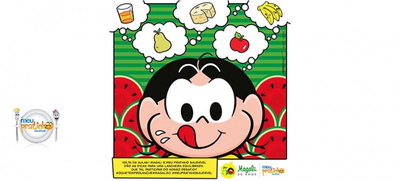 O que o seu filho leva de lanche para o colégio? Para ajudar a montar uma lancheira mais equilibrada, convidamos você a participar do desafio #oquetemprolanche. Fotografe o que você costuma mandar para o seu pequeno na escola (ou que corresponda ao que a escola fornece) e publique em suas redes sociais com as hashtags  #oquetemprolanche #MeuPratinhoSaudável #Magali50.