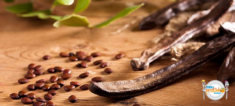 Vem de uma planta típica da região do Mediterrâneo, e pertence ao grupo das leguminosas (feijão, lentilha, grão-de-bico, etc.). A vagem tem elevadas quantidades de fibras alimentares e açúcares naturais da planta.